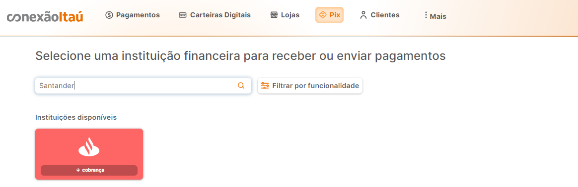 A carteira PIX/Carteira digital já deve estar cadastrada.
